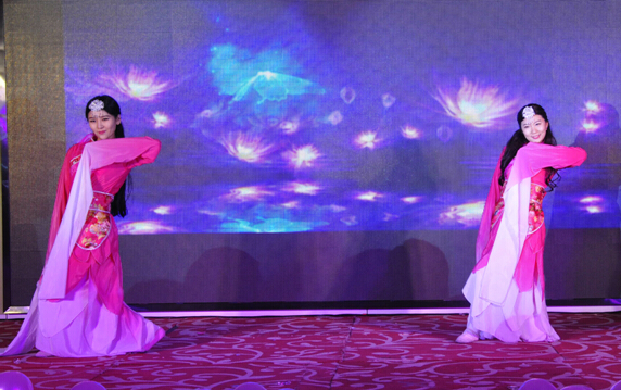 紧接着,两位身姿轻盈的古典美女,为学员们献上一段《惊鸿舞》。柔美的舞姿,绚丽的舞台,将少女时代的美好展现的淋漓尽致,也将晚会推向又一高潮。