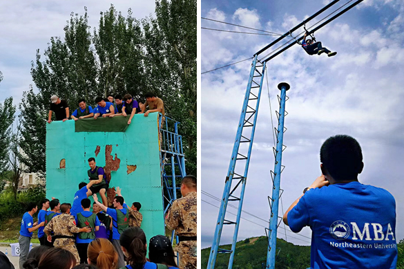 作者: 更新日期:2018-09-07为了使新学员增进胆识、激发潜能、超越自我,加强新学员间的相互了解并培养团队协作精神,东北大学MBA教育中心分别于2018年8月25日-26日和2018年9月1日-2日在铁岭金峰小镇举行了两期2018级新生的拓展训练,参加本次活动的有2018级新学员、2017级部分学员,以及2017级国际MBA班的部分学员。