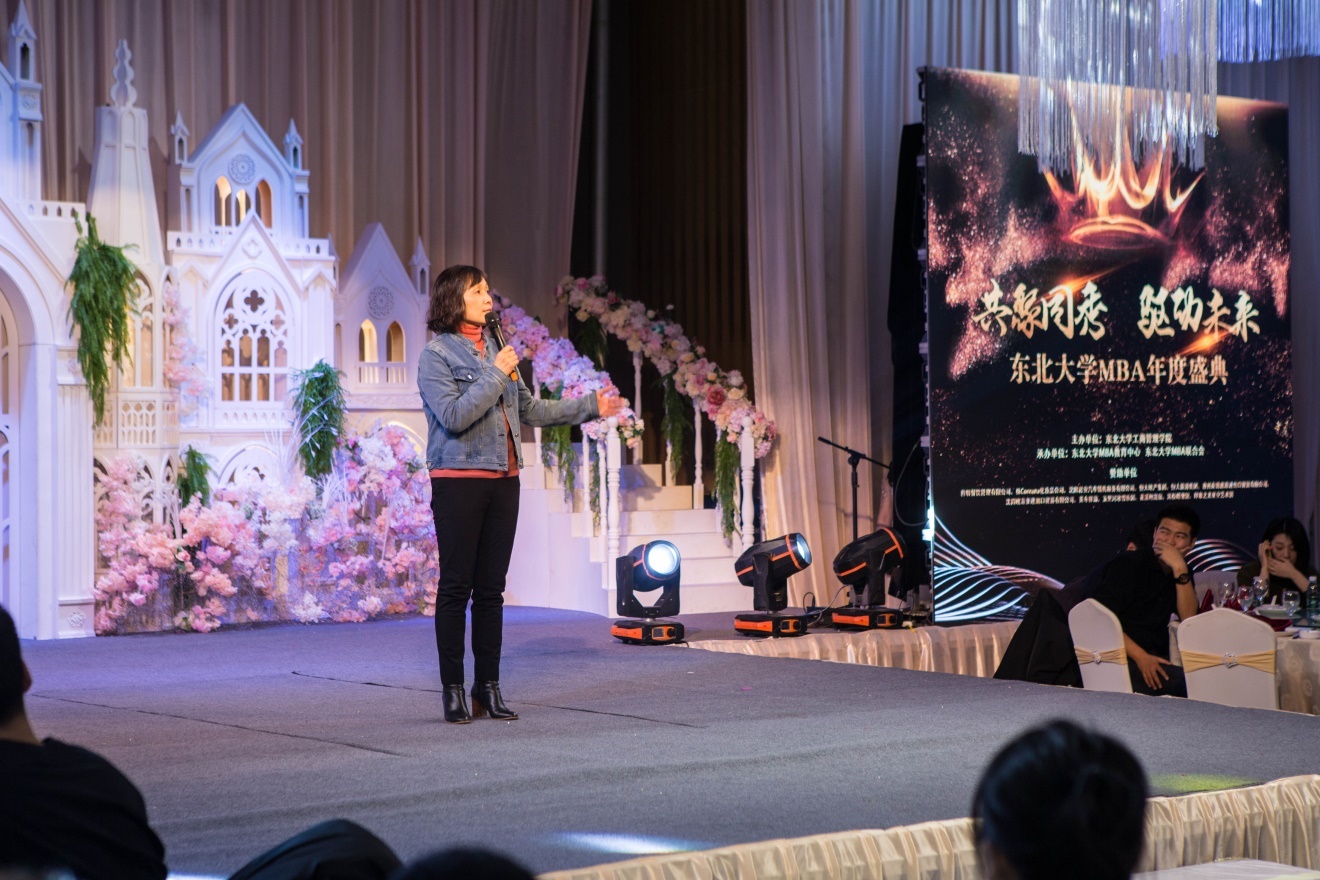 出席本次盛典的嘉宾东北大学工商管理学院副院长郁培丽教授,MBA校友会名誉会长张松伟,东北大学校友会会长陈迪以及东北大学MBA教育中心的老师们。郁教授首先致开场辞,表示对年会组织情况给与了高度肯定,期待2019MBA学员能够继承历届东北大学MBA的优良传统,对MBA年会成功举办致以崇高的祝愿。