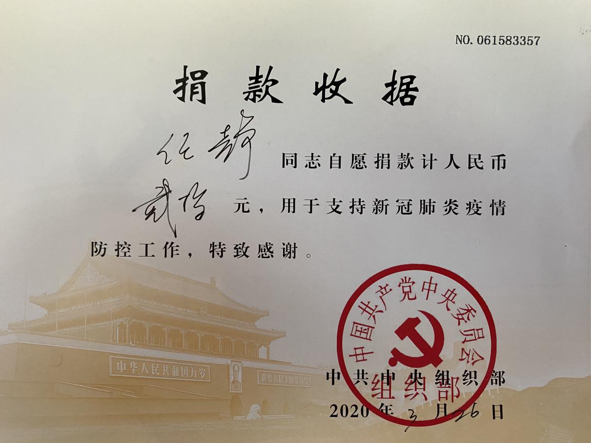 随后,支部党员再次自愿捐款411元,通过街道党工委统一将款项上报中央组织部,以实际行动践行不忘初心、牢记使命的责任担当,全力支持新冠肺炎疫情防控工作。