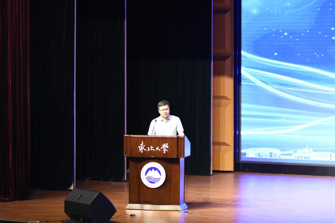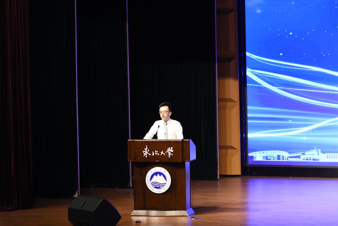 东北大学MBA校友会会长陈迪发言。陈迪代表校友会祝贺新生们的到来。他强调2020年是不平凡的一年,环境越复杂,越应该静下心来进入学习的殿堂。希望同学们能够珍惜当下,珍惜师生情,珍惜同学情,以健康为伴,多组织参与体育活动。2023年是东大百年校庆,很荣幸届时将共同见证东大百年,希望同学们时刻勉励自己,做一名合格的东大人。