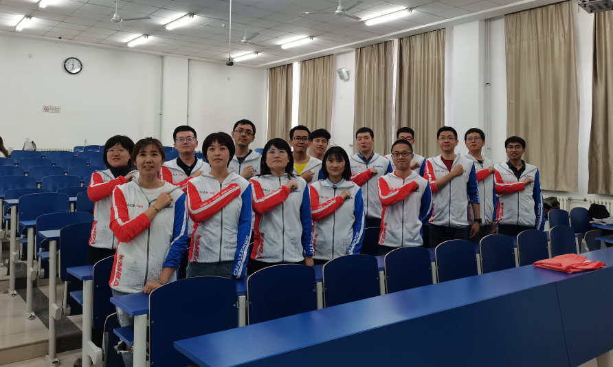 接下来,在东北大学沙十代表队全体队员的见证下,王世权主任与房大鹏队长完成了第十届亚太地区商学院沙漠挑战赛东北大学旗帜授予。沙十代表队全体成员庄严宣誓,将铭记校训、奋勇拼搏、自强不息、知行合一、团结互助、全力以赴。