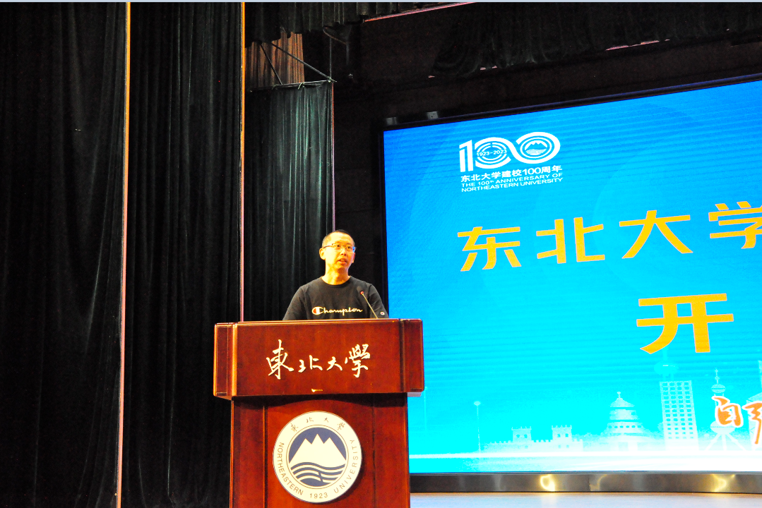 随后,全场人员集体起立,共同唱响东北大学校歌。