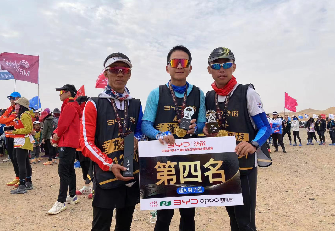 比赛过程中,队员们经历高温暴晒和狂风骤雨,顶着沙丘奔跑与平地奔跑巨大差异带来的严峻挑战,奋力刷新自己和团队的成绩。得益于前期的系统训练,队员们在比赛中及时调整,做好补给和身体恢复,齐心协力,顽强拼搏,挑战自我,超越极限,最终在规定时限内成功完赛,为学校再次夺得该赛事最高荣誉奖项“金沙鸥奖”,兰博老师获得超A男子组第四名。