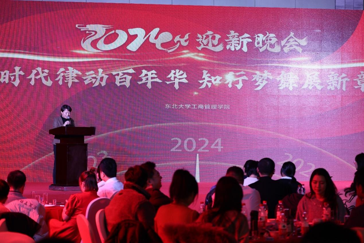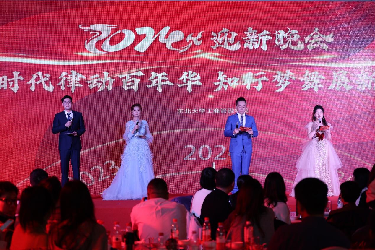 作者: 更新日期:2024-01-312024年1月13日,东北大学2023级MBA“时代律动百年华,知行梦舞展新章”主题迎新晚会在沈阳世茂希尔顿酒店举行。东北大学工商管理学院党委书记任丽、副院长贾建锋、院办主任王寰、教师闫佳祺、MBA教育中心办公室主任王星戈,班主任曹静姬、周红梅、翟宇佳、赵静桦老师,以及东北大学MBA校友会会长、中京国业建筑有限公司总经理陈迪受邀出席晚会盛典,与200余名2023级MBA学子齐聚一堂,共度新春。