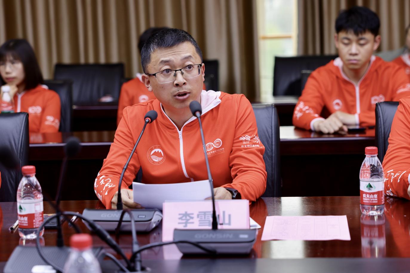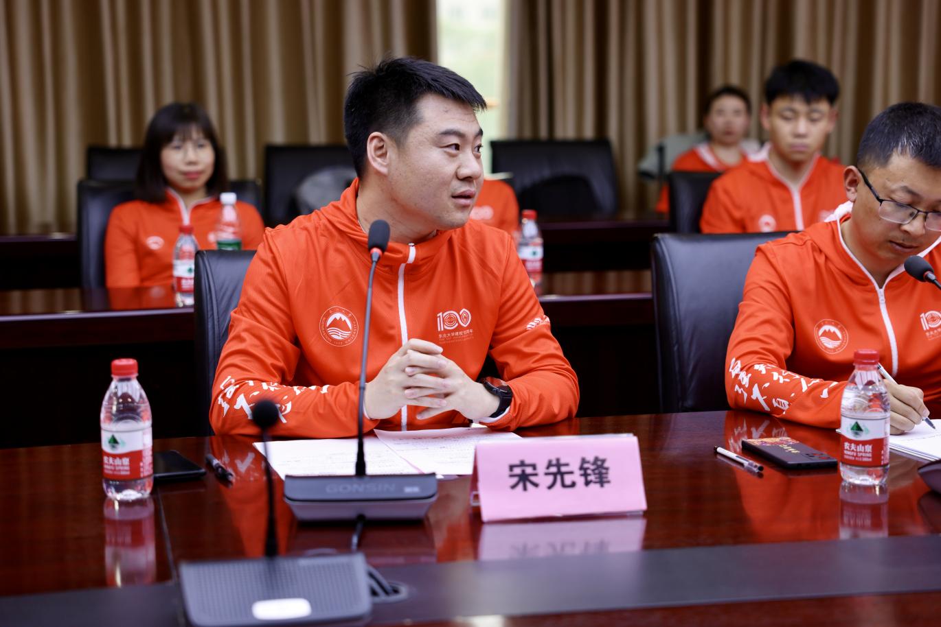 仪式首先由东北大学工商管理学院副院长王世权教授致辞。王院长肯定了东北大学沙十三代表队过去大半年的刻苦训练和辛苦付出,嘱咐队员们要时刻保有安全意识,重视自身安全和注意周遭环境变化,希望队员们继续发扬东北大学优良传统作风,在赛场上赛出风格,赛出水平,秉承“自强不息,知行合一”的校训精神,遵从“环保、协作、坚持、责任”的赛事理念,携手并肩、勠力同心,努力实现成就团队与自我的目标传承,为学校增光添彩。